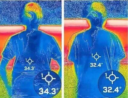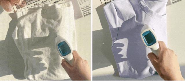 同事上身親測,穿上涼感T恤和純棉涼感T恤,同時站在陽光下暴曬5分鐘: