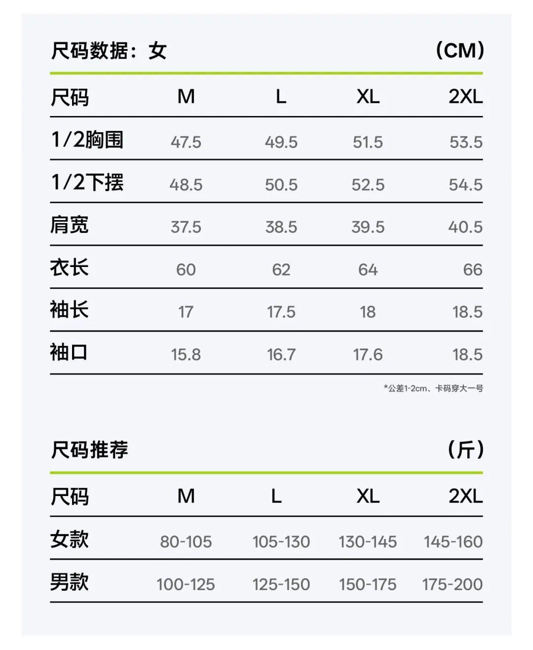 女生尺碼有:M-2XL,80-160斤都能穿