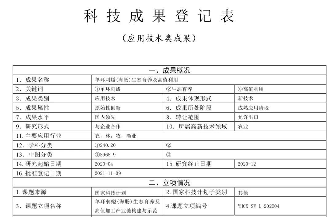 我嘗試搜索“海腸人工養殖”,驚訝地發現,原來人工養殖海腸的技術突破,早在2020年就立項開始。這是國家科技計劃的課題,由中國科學院煙臺海岸帶研究所執行,並於2021年完成。在歸類上,這個技術突破屬於中國的“原始性創新”。