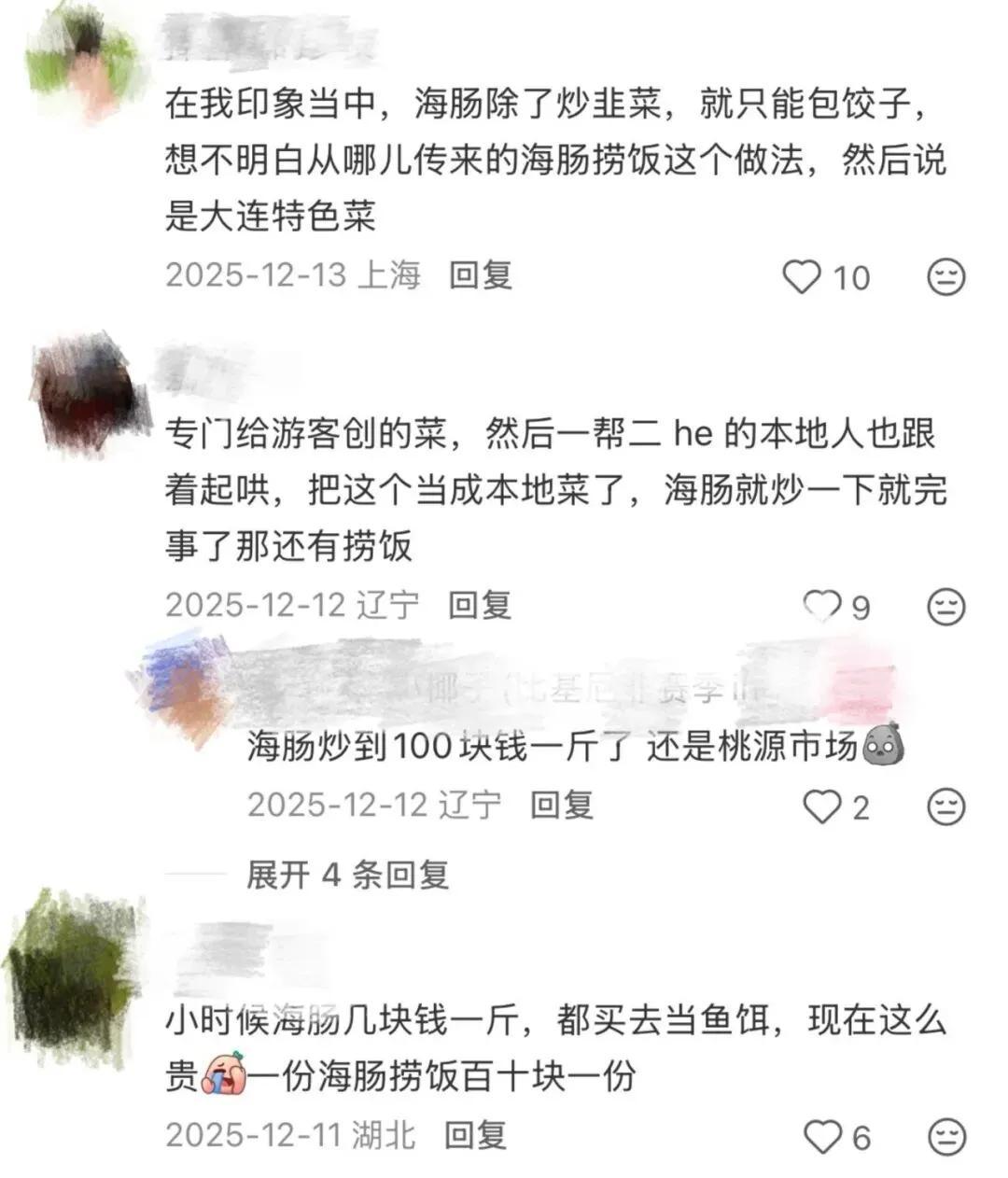 “我們這兒海腸只炒韭菜,可沒有拌飯的做法。” 大連的大哥回覆。