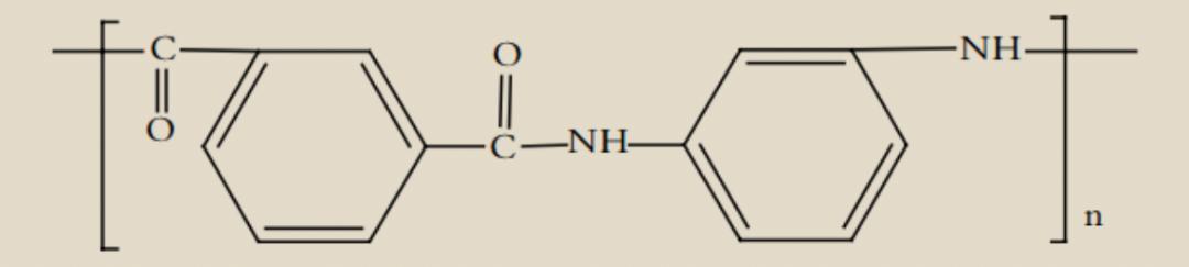 上下兩圖分別爲對位芳綸(芳綸 1414)和間位芳綸(芳綸 1313)的化學式。芳綸的兩大核心品類即爲對位芳綸(芳綸 1414)和間位芳綸(芳綸 1313)。圖片來源:參考資料[5]