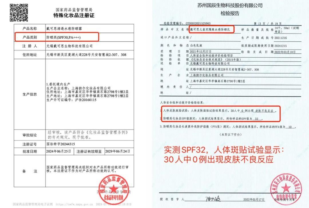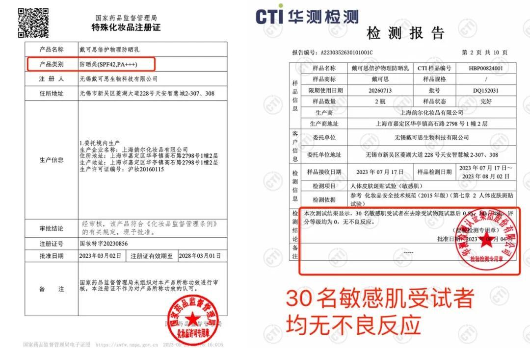 我們之前已經推過很多次它們家的產品了,每次反饋都特別好。這次又選中戴可思,還是因爲那個硬道理:品牌口碑好,產品成分簡單、備案信息完整,檢測報告齊全。