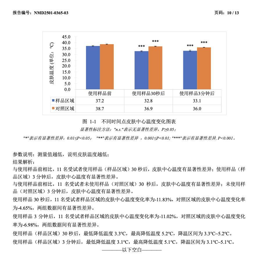品牌方還做了專業檢測,使用冰沙霜30秒、3分鐘後,皮膚有大約3-5°C的降溫變化。