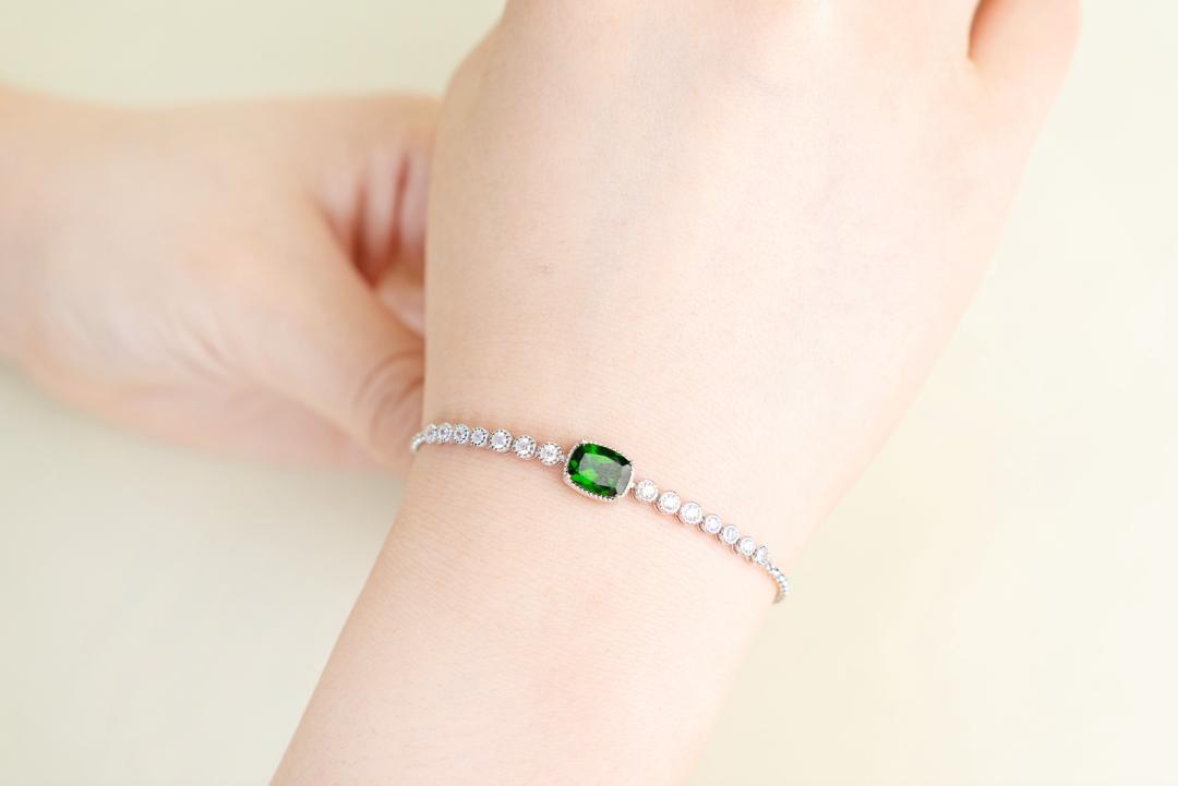 還有一位,就是來自西伯利亞的深綠色寶石——透輝石,顏色深邃飽滿,像秋天森林裏的苔蘚那種綠法,很文藝,也很適合疊戴。