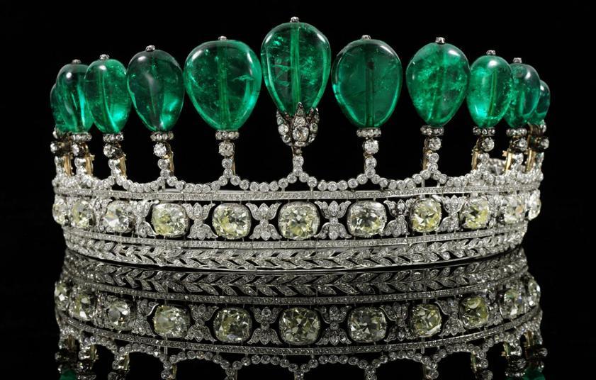 鑲有11顆哥倫比亞梨形祖母綠寶石王冠,創下了祖母綠王冠的拍賣紀錄丨thejewelleryeditor.com