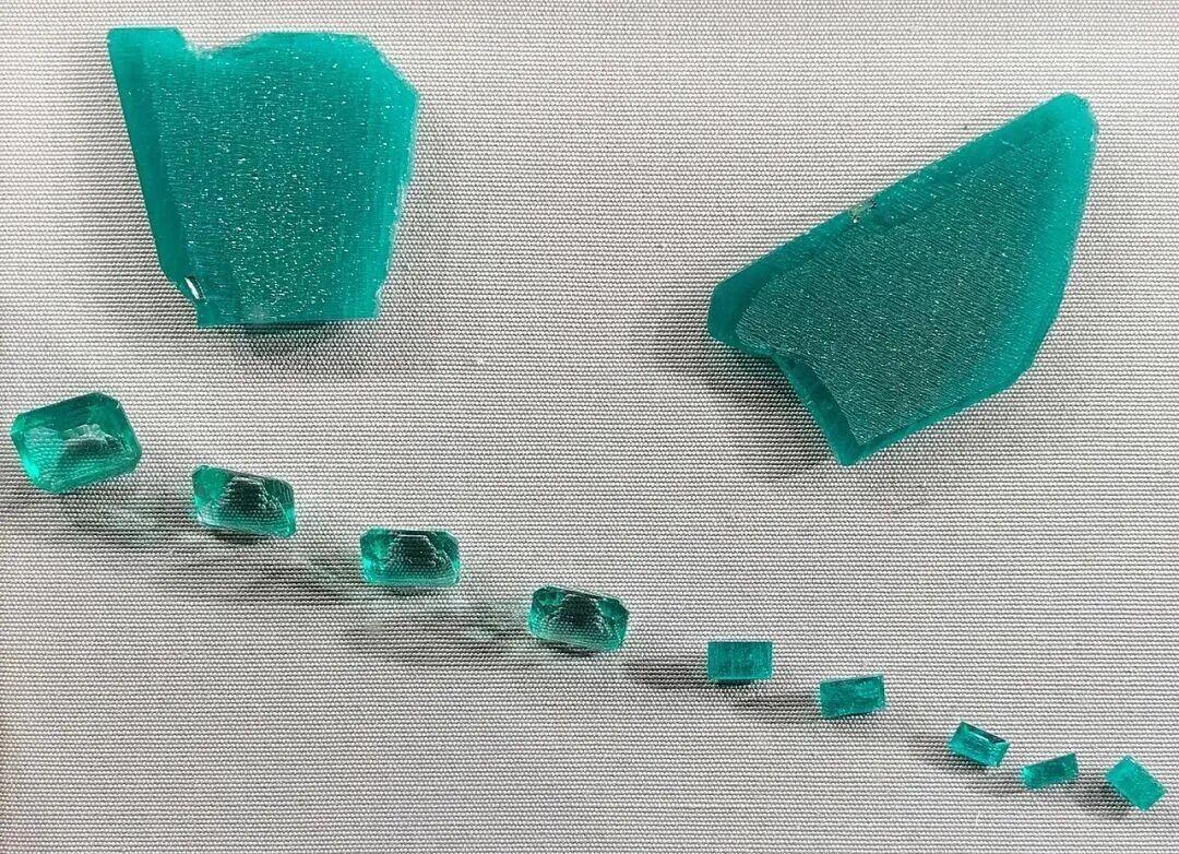 水熱法獲得的培育祖母綠。圖片來源:wikipedia.org