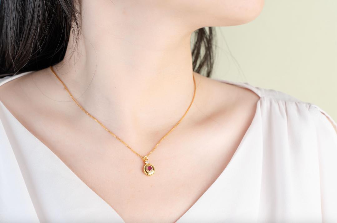 在選款時,我們要求主石足夠漂亮,整體也要兼具設計感,例如這條美貌的天然紅寶石鎖骨鏈,辦公室裏不少姐妹都惦記上了,只要小几百就能拿下。