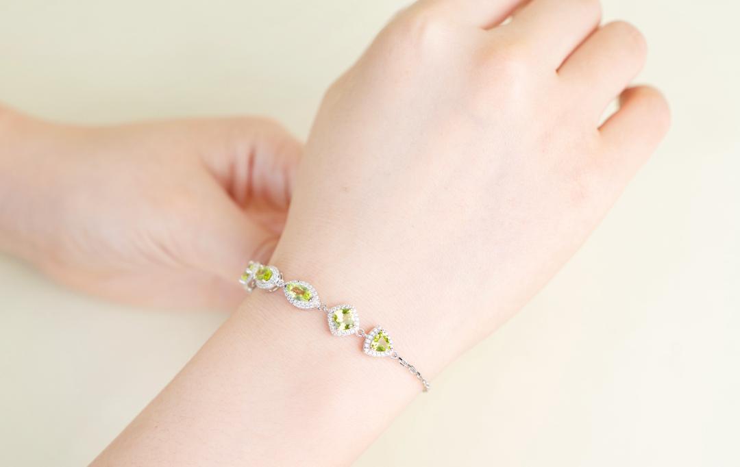 其中之一是橄欖石,石如其名,黃綠色,帶一點點金調。它不是那種深沉的祖母綠,更像是春天樹葉對着光透出來的那個顏色。