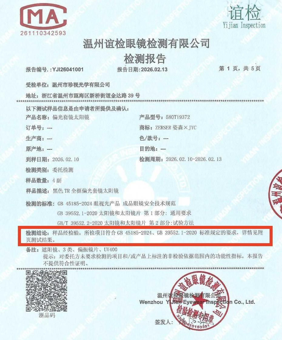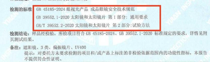 ✅ 當前新生產的太陽鏡,需要同時符合兩個強制性國標GB 39552.1-2020 和 GB 45185-2024。其中 GB 39552.1-2020是太陽鏡產品的“專屬”標準,而2026年1月1日實施的GB 45185-2024則是覆蓋所有成品眼鏡的“通用”安全規範。