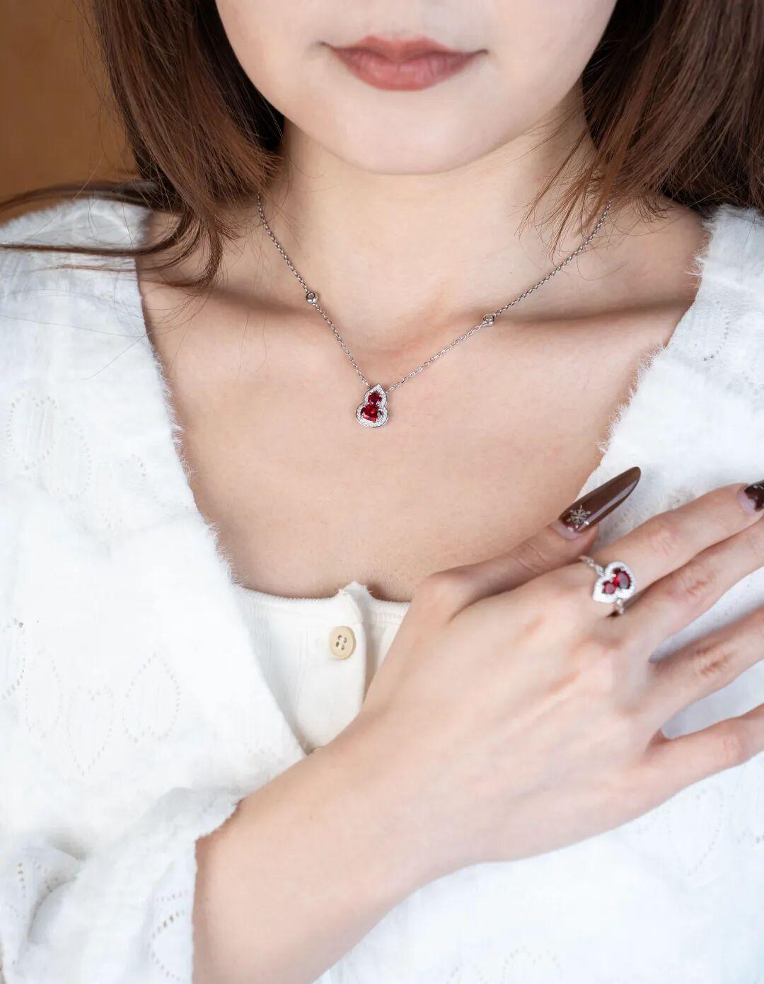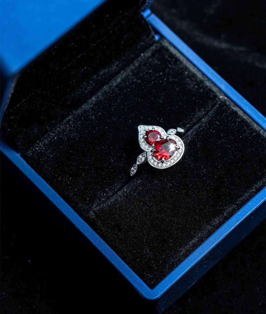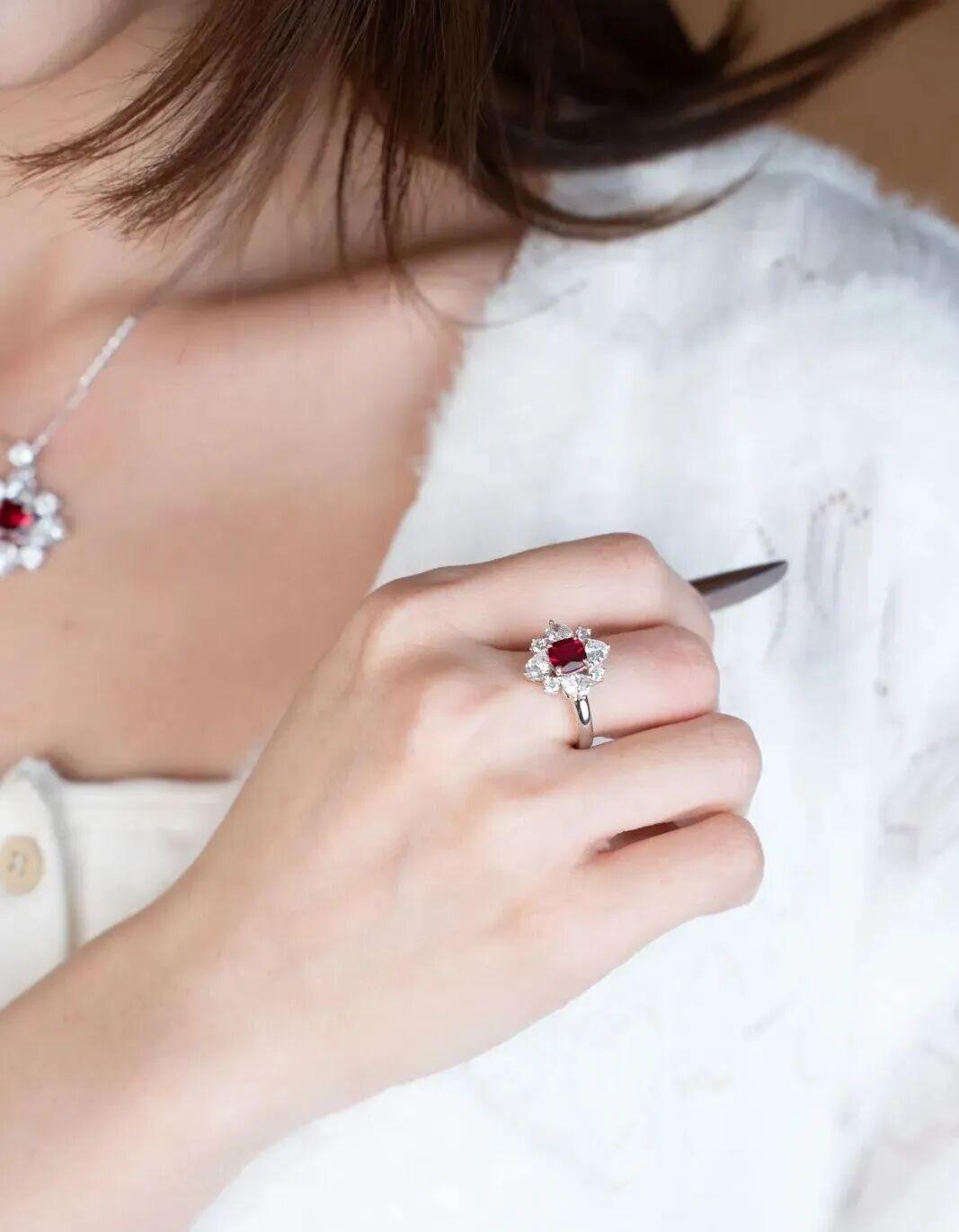 光線打在刻面上,會像水波紋一樣層層反射,從各個角度看都閃,把紅寶石那種 “鮮活剔透的紅” 完全透出來了,不會顯得沉悶。