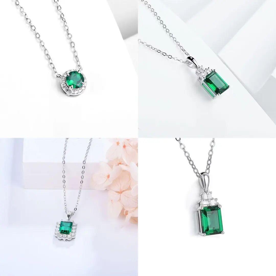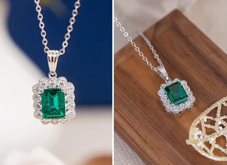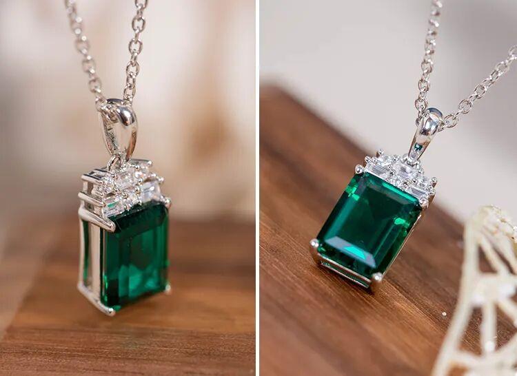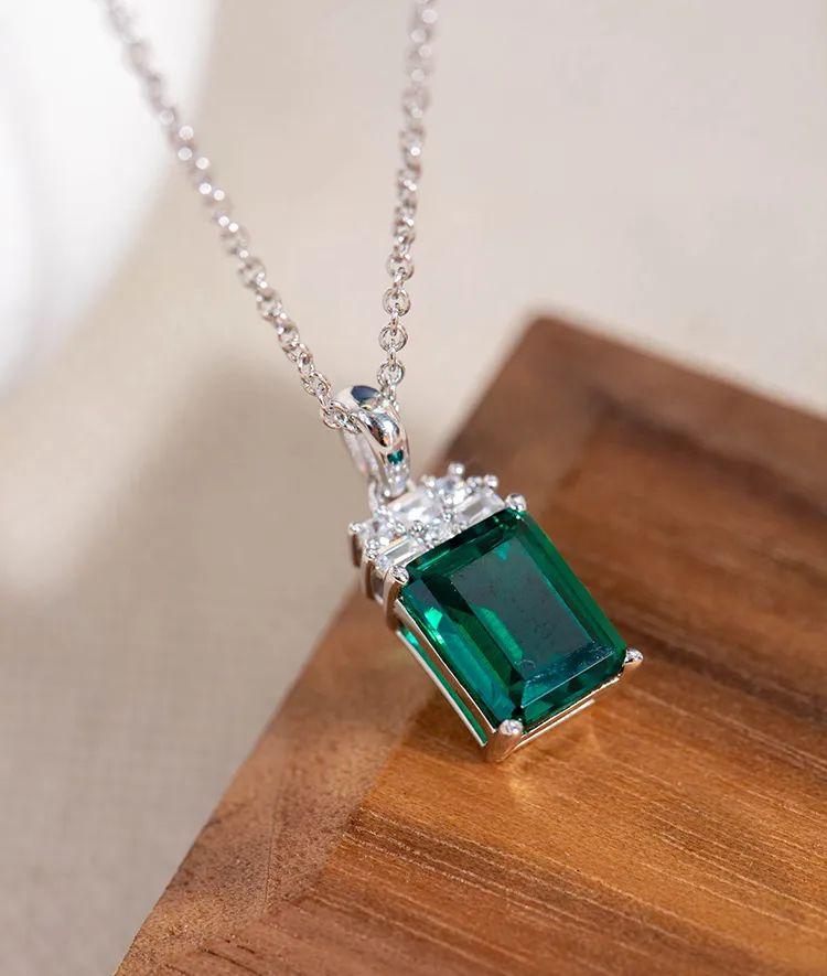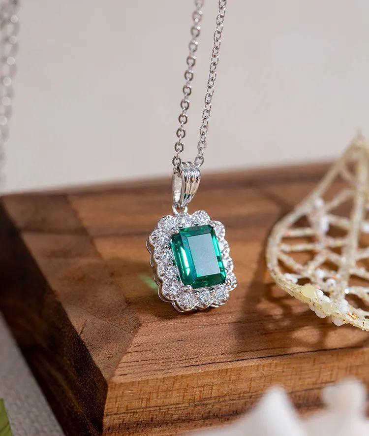 方形切割的祖母綠,呈現出幾何的線條和簡潔的形狀,使整個吊墜具有現代感和時尚氣息。