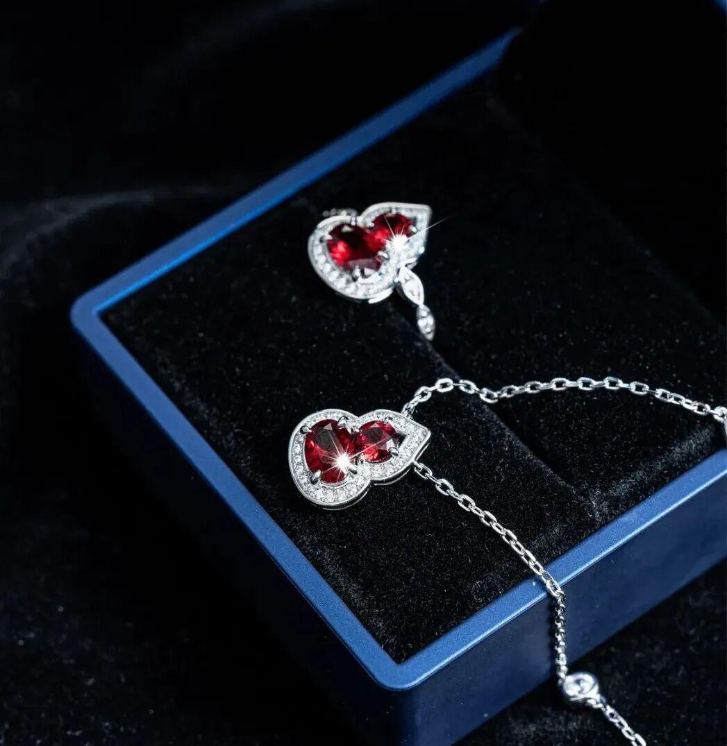 將培育紅寶石做成“葫蘆”形,工藝難度十分的高,爲此古蝶用兩顆緊密依偎的心形主石,採用“精對稱切割”,從檯面到亭部的比例經過反覆校準,讓這兩顆宛若天然的葫蘆。