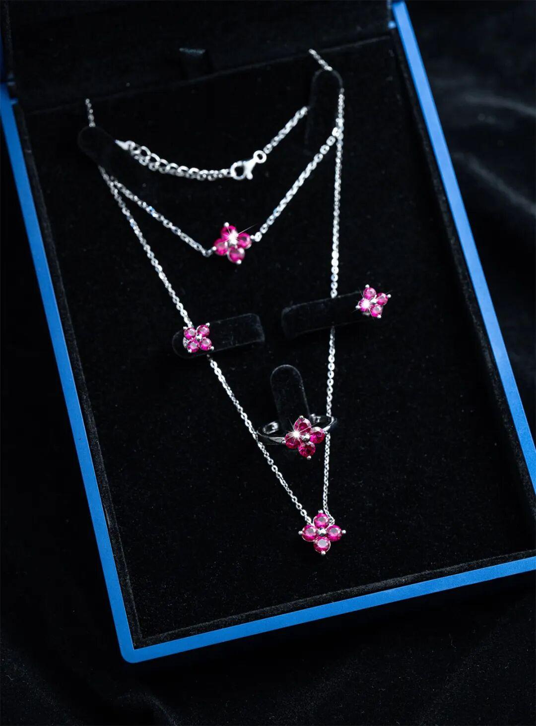 花影有項鍊、耳環、戒指和手鍊,可以單獨選購,也可以成套購買。