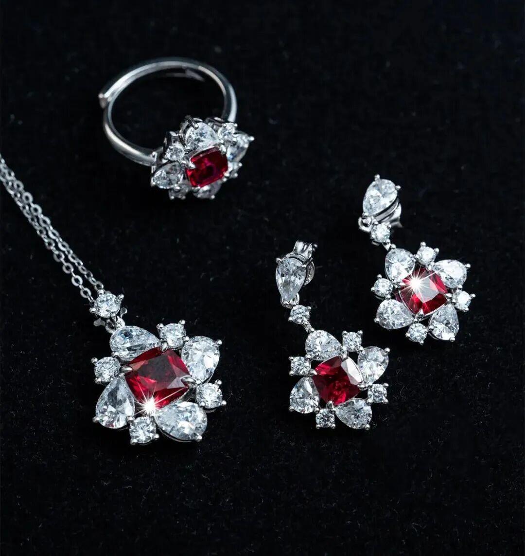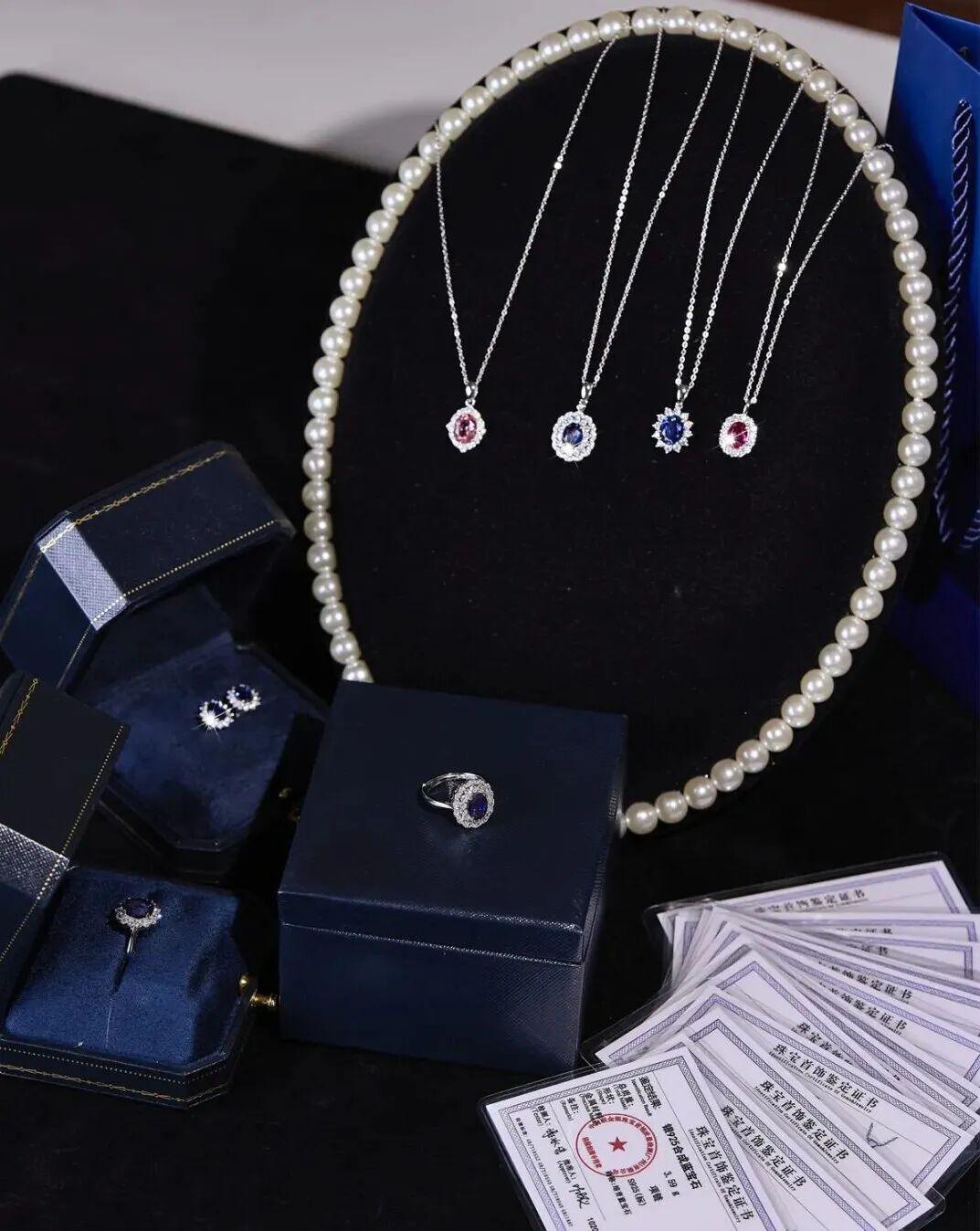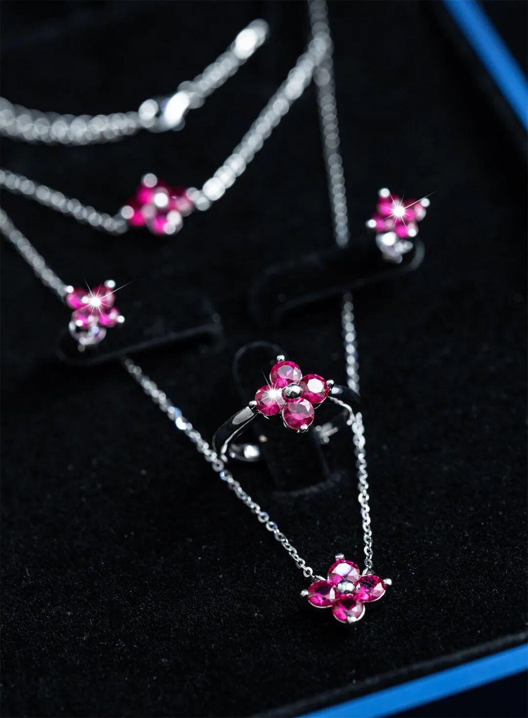 全部採用S925銀材質精緻打造鑲嵌,項鍊、戒指、耳釘全都有。