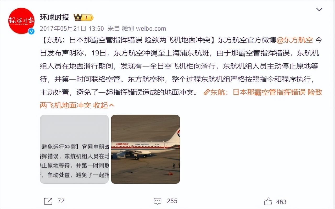 其實之前日本就幹過,空管發錯指令的事情,2017年,我國東航一架飛機,執行從沖繩到上海浦東的航班,結果那霸空管指揮錯誤,飛機在地面滑行期間,發現有一架全日空飛機正相向滑行,要不是東航機組人員處置得當,後果真是不堪設想。
