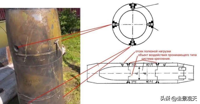 從特徵上來看,那枚所謂的“戰鬥部”不論在尺寸上、重量上、外形上,都不像是在之前公佈照片中的那些高超音速導彈,而更像是某種老舊的常規航空炸彈的一部分。