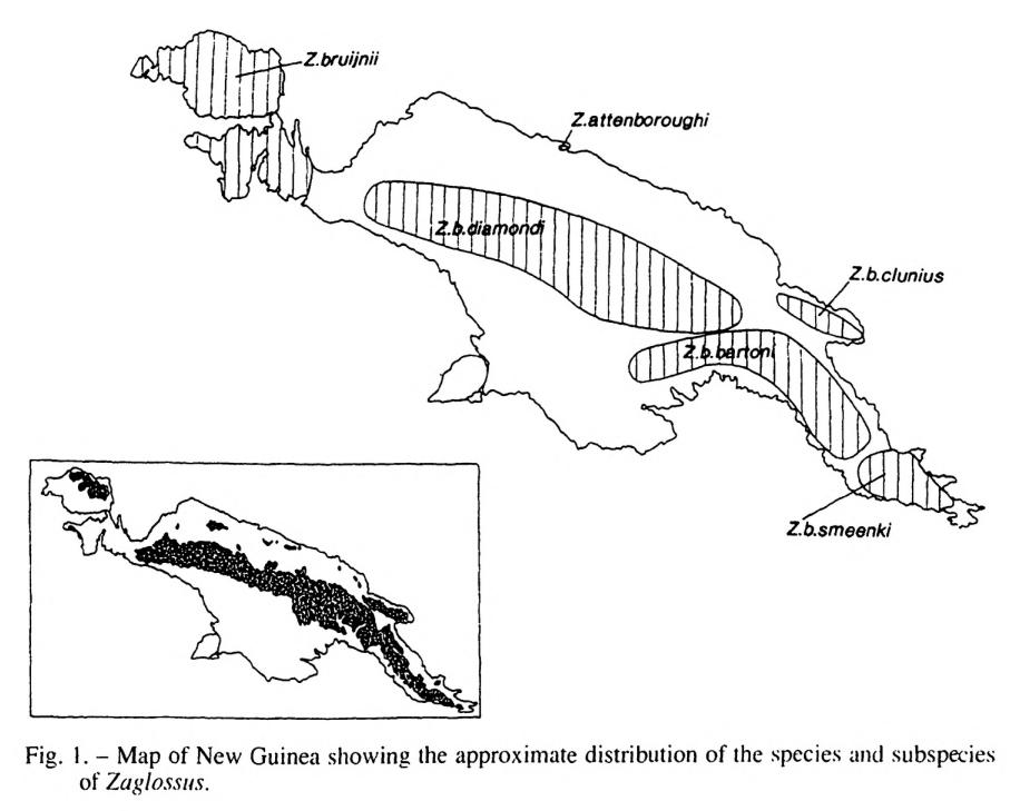 [1] Flannery, T. F., & Groves, C. P. (1998). A revision of the genus Zaglossus (Monotremata, Tachyglossidae), with description of new species and subspecies. Mammalia, 62(3), 367-396