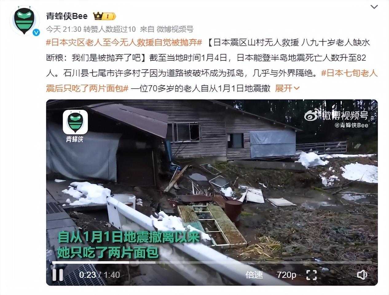 積石山地震後,多偏遠的地方,都有人去救災。日本地震後,震區山村無人救援,這些村子裏大多都是70歲以上,行動不便的老人,沒喫的,沒喝的,還有人被埋在廢墟下面,1個70多歲的老人,3天只喫了2片面包,心酸的抹淚說:我們是被拋棄了吧!