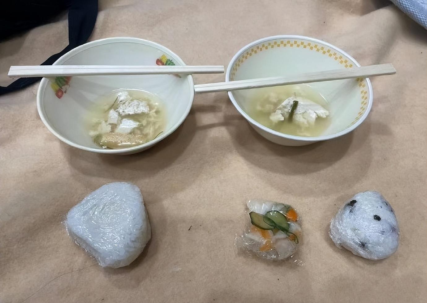 日本地震之後啊,哎呀,那飯菜,就是喂貓也不夠啊,連個碗底都蓋不住的豆腐湯,還有一個飯糰,沒了,不知道的還以爲是剩飯呢。但是有人說,日本嘛,他們的飲食很清淡的,注意養生,這真是太養生了。我覺得吧,積石山當地人喫剩的剩飯,都比他們的飯菜多。