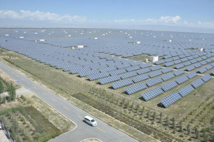 不過這裏的光照十分充足,每年光照時長高達1800個小時,非常適合發展光伏發電,所以自2012年起,這裏建成了世界最大的光伏發電園區,總面積達到了609平方公里,總裝機容量100萬千瓦,每年發電量能達到100億千瓦時,光是煤炭就省了311萬噸。