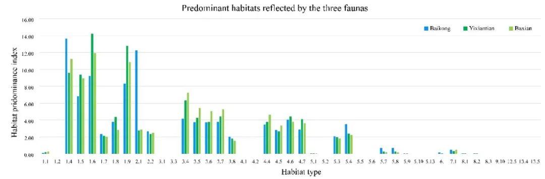 巨猿生存不同階段的動物羣所反映的棲息環境類型(圖片來源:論文原文)