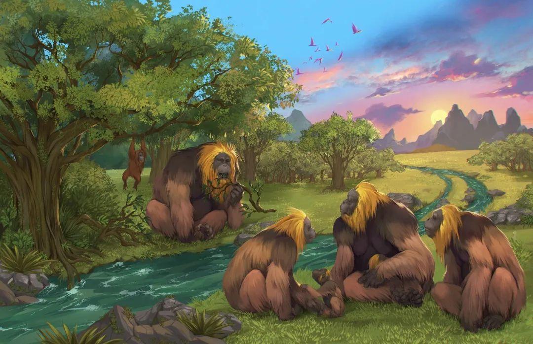 巨猿生活場景復原圖 (圖片來源:Garcia / Joannes-Boyau 繪製)
