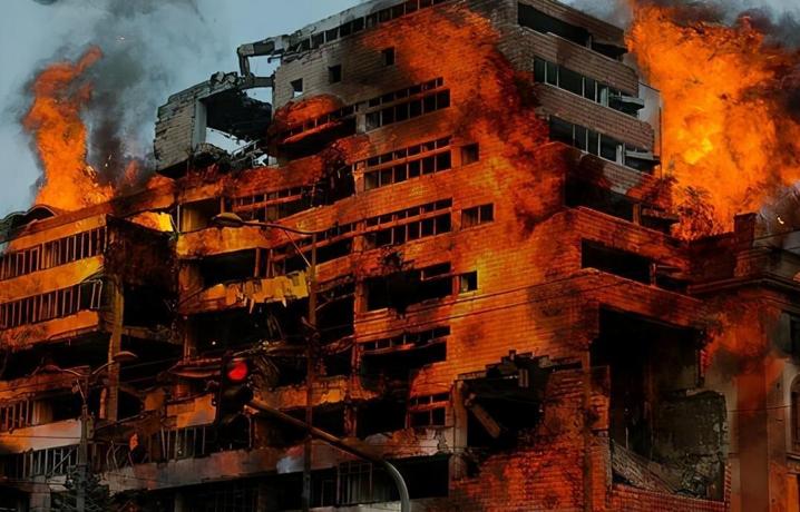 美國B-2隱身轟炸機從高空釋放了精確制導炸彈,在夜色的掩護下,這三枚炸彈精確地命中了大使館,霎時熊熊大火與濃煙吞噬了整座建築。