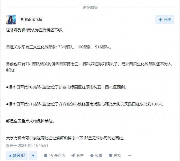 到底是誰在黑哈爾濱啊?有人在網上提問,哈爾濱頻繁上熱搜,是否存在過度宣傳,一個博主回答說:我認爲宣傳的還不夠,日寇關東軍有3支生化部隊,731部隊、100部隊、516部隊,人們只知道731,另外2個生化部隊還鮮爲人知。