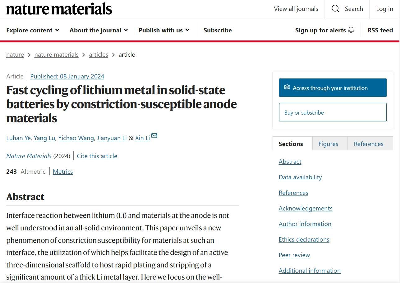哈佛大學約翰·A·保爾森工程與應用科學學院李鑫教授、Luhan Ye博士領導的團隊,經過多年的研究,可能已經解決了這個登天難題,開發出了利用鋰金屬負極製造固態電池的新方法。這項研究發表在1月8日的《自然-材料》雜誌上,並已授權給他們早些年成立的阿登能源公司(Adden Energy),目前已生產出智能手機所用大小的固態電池,預計三到五年就可以擴展到電動汽車所用的全尺寸固態電池。