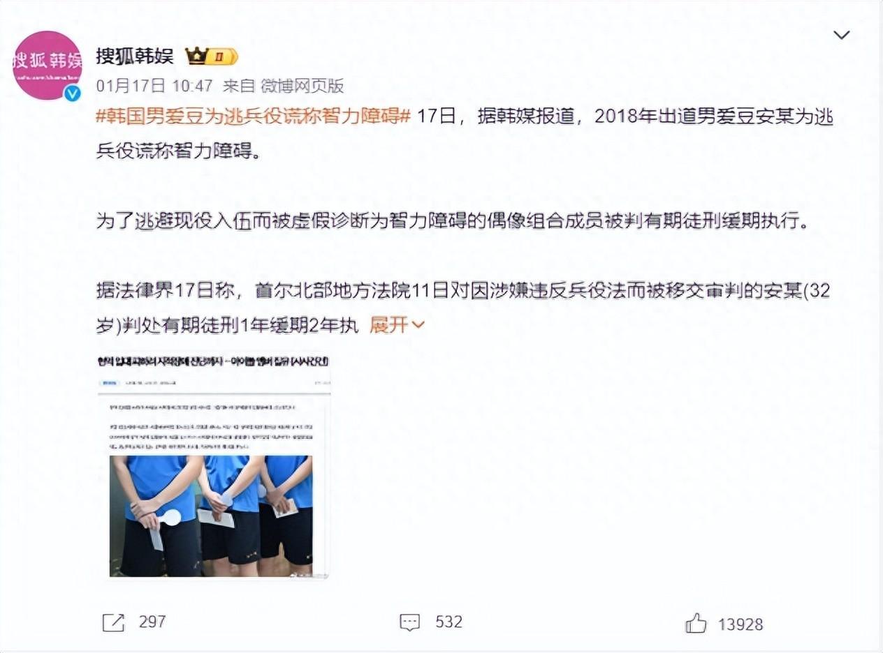 韓國一個愛豆安某,爲了逃兵役,竟然謊稱自己有智力障礙,現在被韓國政府指控了,被判刑了不說,還得補服兵役。