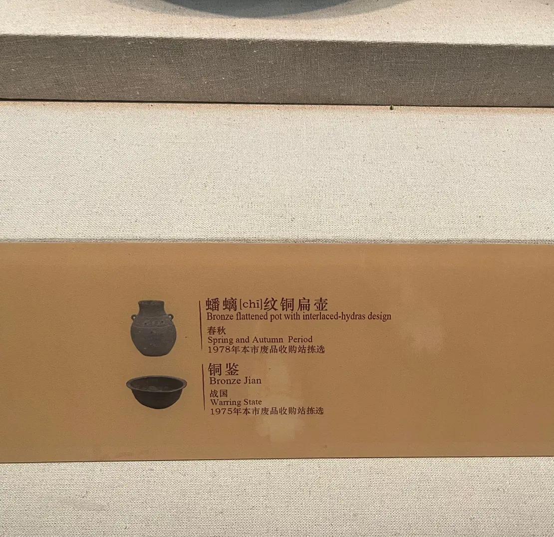 逛了一大圈蚌埠博物館,看了這些國寶來源屬實繃不住了!果然高端的博物館往往採取最樸素的進貨方式,廢品站甄選!同意是陳列在玻璃櫃中,隔壁的是考古挖掘的,自己是我廢品站撿的!別說這些,連著名的吳王夫差chai銅劍,也是平度廢品收購站找到的,其他地方也是差不多!漢代的獸紋銅鏡,來自山東棗莊市廢品收購站徵集,秦始皇統一稱量糧食的鬥,廢品收購站找到的根據粗略統計解放後到上世紀六七十年代,從全國運往上海金屬冶煉廠,和廢品回收站搶救了逾10萬件青銅器!這些數量雖比不上大英博物館沒回家那些,但一個博物館還是放不下的!