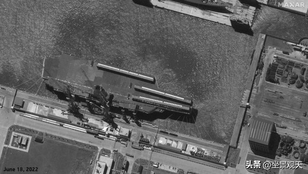 雖然熟悉航母輪廓的軍迷可以勉強辨認出尼米茲級航母的位置,但對於大部分人而言,這張衛星照片的清晰度的確遠遠比不過美國Maxar公司所發佈的衛星照片。