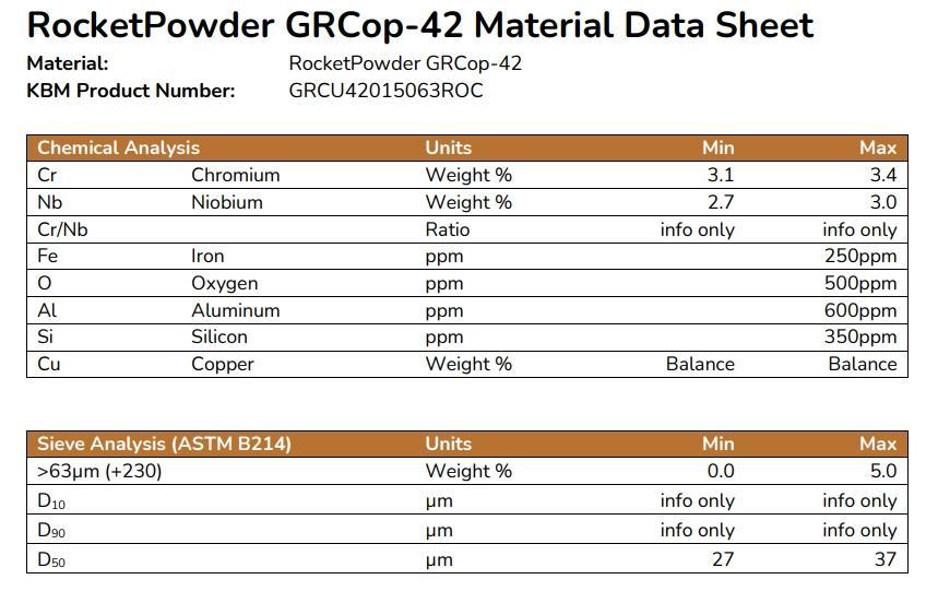 然後就是材料和製造問題,你很容易就想到,要用爆轟來代替燃燒,發動機需要承受巨大的壓力和高溫,NASA使用的是來自KBM先進材料公司的鈮鉻銅合金,強度高,導熱性好,可以承受2000度的高溫,用3D打印成型。我找到了這種材料的成分,大致是鈮2.7%-3%,鉻3.1%-3.4%,鐵氧鋁硅微量,剩下的是銅。