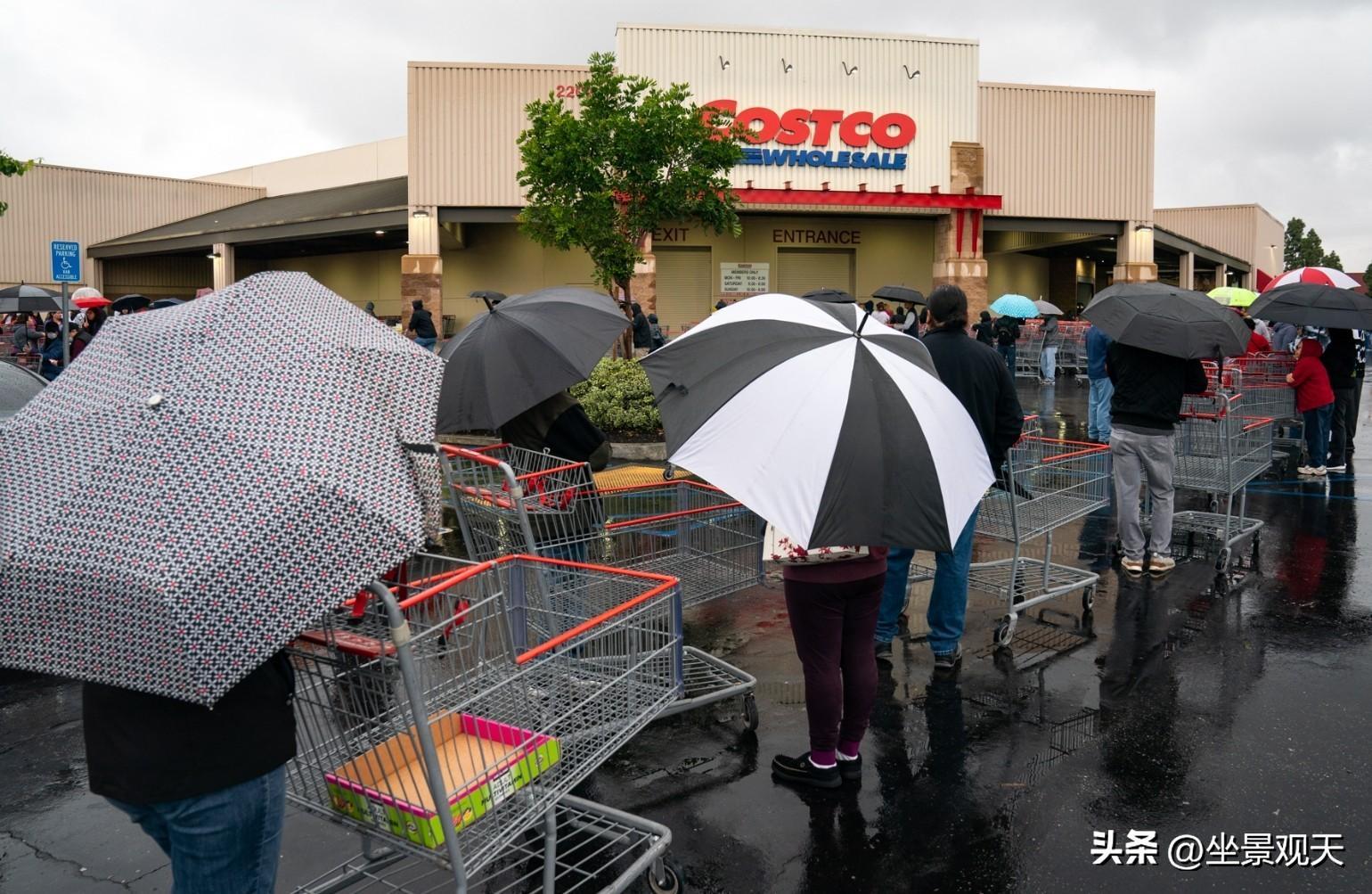 排隊搶購超市物資的美國民衆