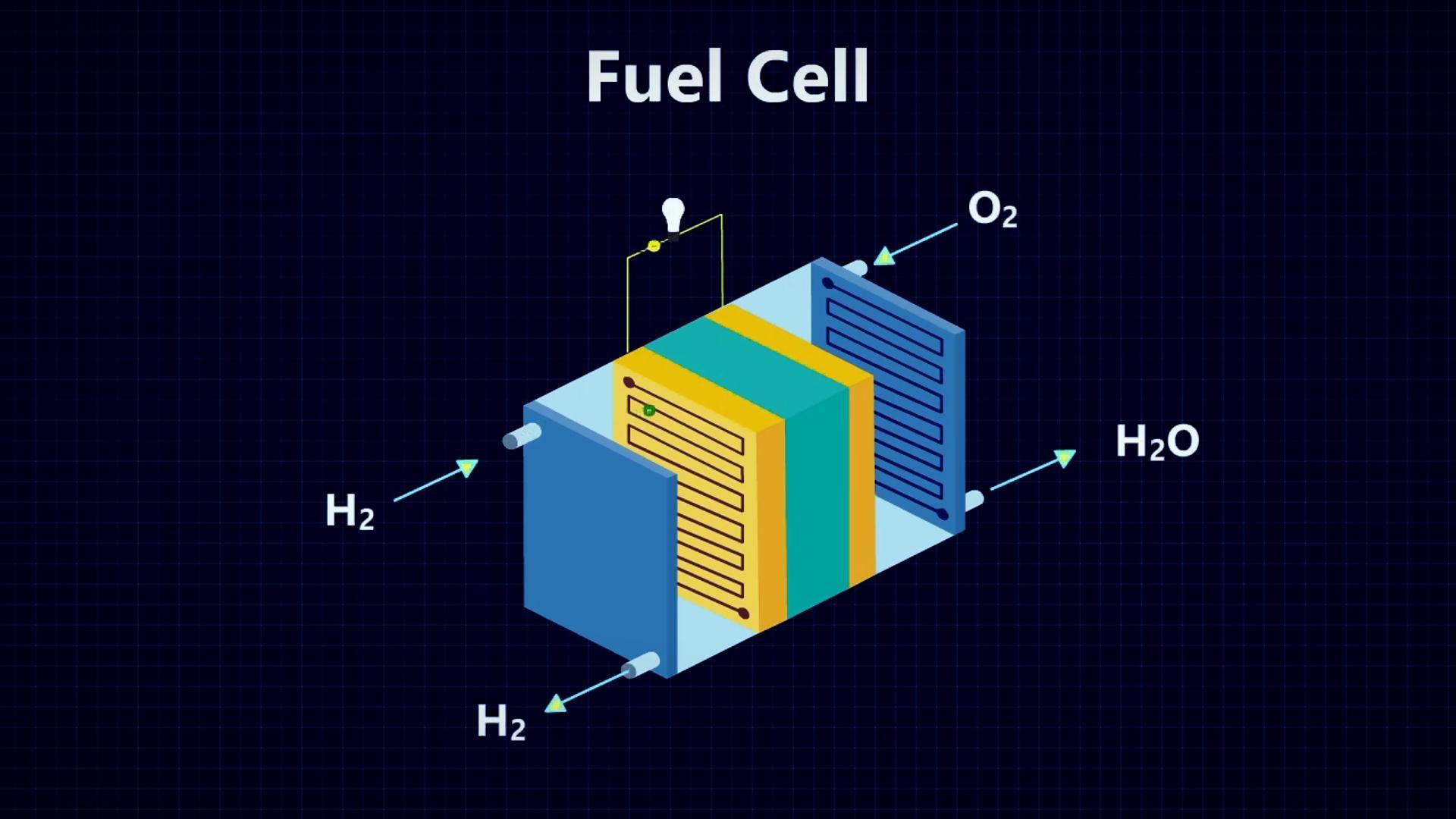之後質子和電子在陰極重新結合成水,只要陽極有氫供應,電池就能持續發電,而且這種電池也不產生任何污染物,最令人驚歎的是,它的能量轉換效率可以達到60%到80%,是傳統內燃機的2到3倍,所以被認爲是完美的零排放能源。