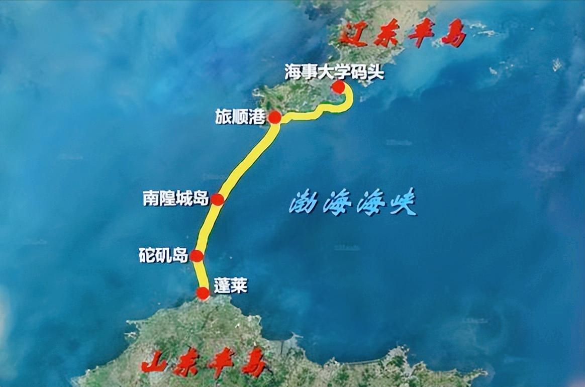 渤海海峽是連接我國東北和華北區域的重要海域紐帶,它也連接着我國的渤海和黃海,現在如果從遼寧大連到山東煙臺,沒有海上直接的航道,通過陸地上的繞遠,往返的話,單程都需要1600公里,如果能夠形成海上的直接通道將會達到直線距離只有100公里左右,這個16:1的懸殊距離差能夠提升的效率是非常顯著的。