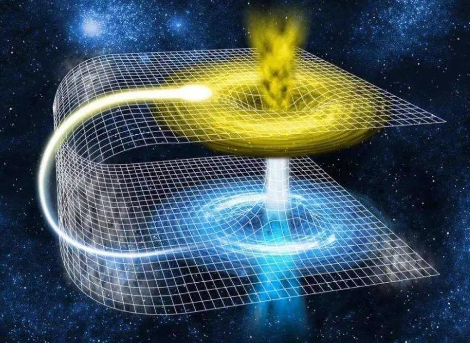 再比如說,按照科學的理論,空間當中可能存在蟲洞(目前未證實),此類蟲洞就像一張摺疊起來的紙,並在其中穿插一根吸管。
