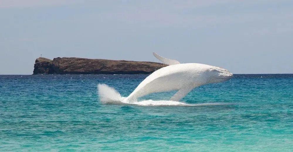 白色座頭鯨——米伽羅 (圖片來源:hawaiianpaddlesports.com)