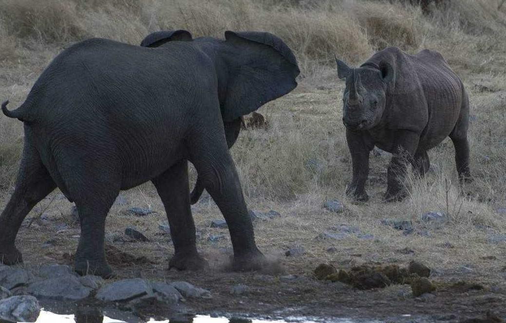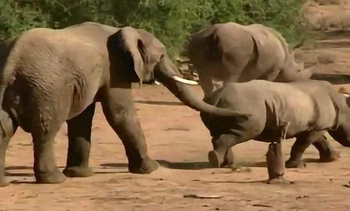 對於大象來說,犀牛似乎成爲了他們施加暴力的對象。