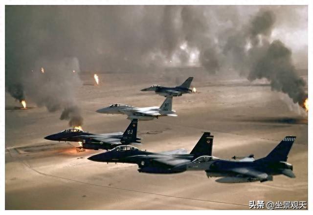 美軍也發動了有史以來最爲成功的一次空中攻勢,利用新一代信息化武器裝備,美軍成功壓制了薩達姆從法國購買的防空作戰體系,看似實力還不錯的伊拉克空軍壓根沒能起飛作戰。