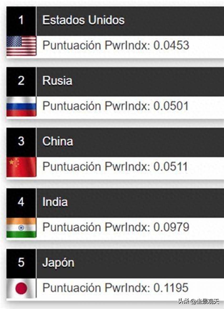 作爲世界上最權威的常規軍力排行榜單之一,該榜單根據各國的“火力指數”(PowerIndex),得出世界各國的軍力排行(Military Strength Ranking)。
