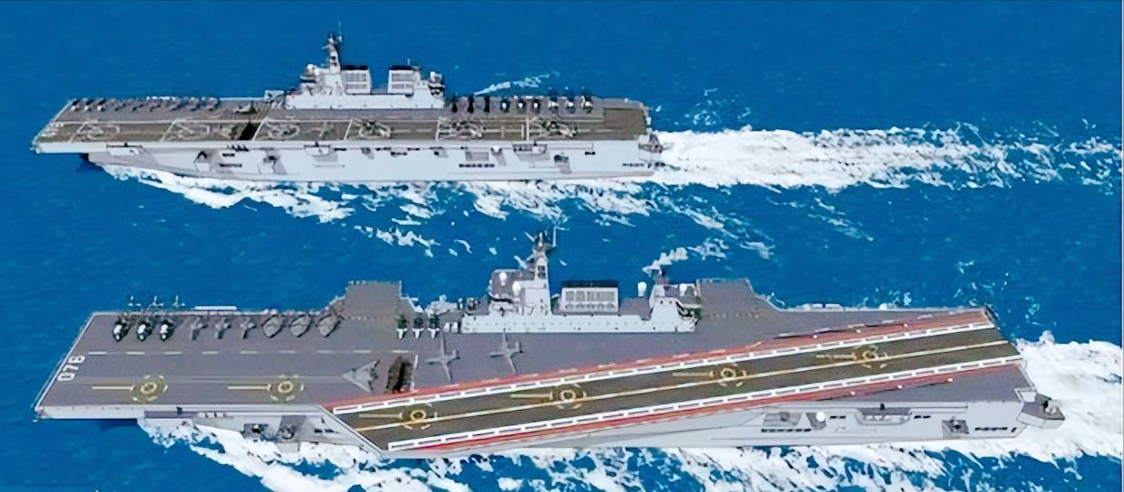 這樣一來,中國雖然正規的航母數量不能一蹴而就,但是海面作戰能效可以媲美的兩棲攻擊艦和萬噸大驅,能夠突破建造週期長交付時間慢等難題,實現數量快速補充,擴充實力,075兩棲攻擊艦和076兩棲攻擊艦排水量4萬噸左右。