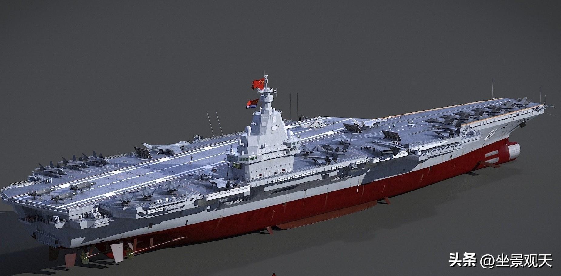 按照江南造船廠和大連造船廠所曝光的下一代航母設計方案來看,中國將會在2030年前建造核動力超級航母,其性能直追美國“福特級”航母。