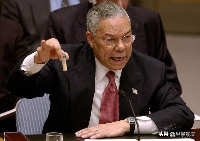 時任美國國務卿鮑威爾也是在聯合國安理會上演技爆棚,還像模像樣的掏出一管白色粉末,稱其爲伊拉克生化武器的樣品,這才獲得了安理會的默許和同意。