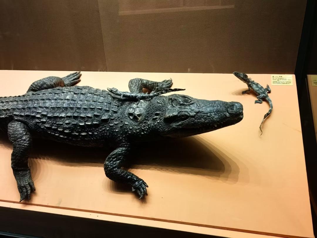 暹羅鱷標本,它背上的疙瘩就是皮內成骨的例子 (圖片來源:作者拍攝於天津自然博物館)