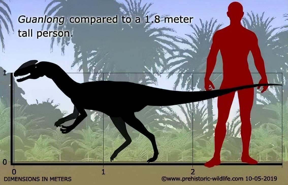 電冠龍和人類的大小相比(圖片來源:http://www.prehistoric-wildlife.com/species/g/guanlong.html)