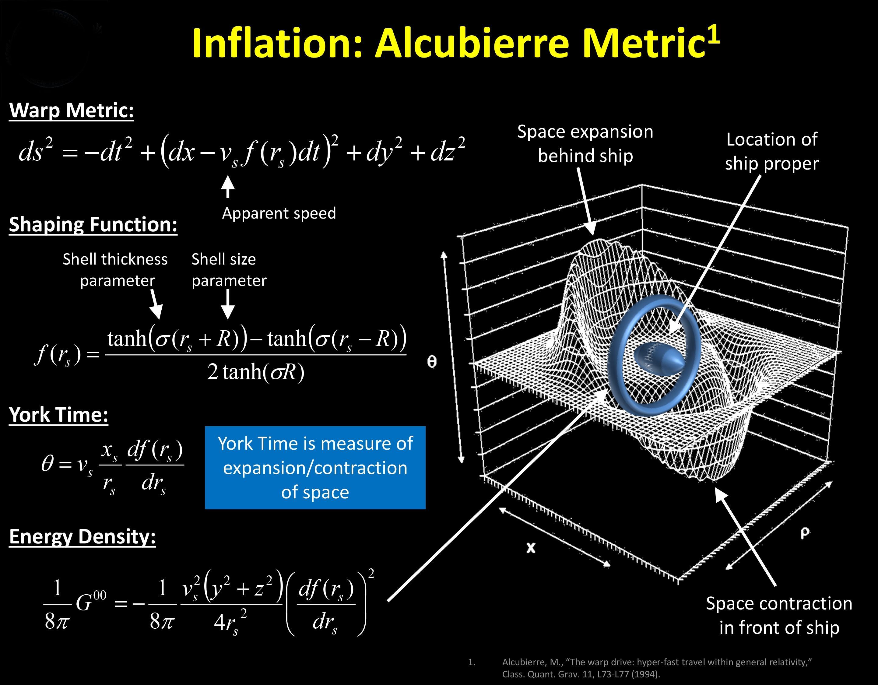 是不是想起了什麼?沒錯,科幻電影《星際旅行》中的曲速引擎,物理上叫阿庫別瑞引擎,通過壓縮飛船前方的空間,擴張後面的空間,在空間中製造一個人工“氣泡”,或者叫曲速泡,飛船被完全包裹在泡中,乘着泡前進。由於曲速泡內部仍然是正常的時空,所以可以在不違背愛因斯坦相對論的情況下,進行超光速的星際旅行。
