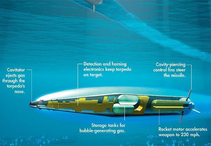 是不是不明覺厲?打死你可能也不敢相信,什麼東西能在水中以5800公里/小時,也就是1600米/秒的速度運動,已經遠遠超過子彈的速度了。但這種潛艇在理論上確實是可行的,它利用了一種叫超空蝕效應的現象,在潛艇周圍製造出一個大氣泡,潛艇就在這個氣泡中前進,由於不再有水的阻力,理論上潛艇可以達到極高的速度。