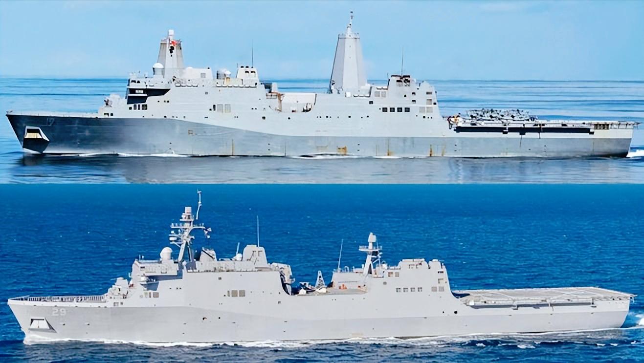 055萬噸大驅排數量爲1.3萬噸左右,西方以往建造的重型巡洋艦的噸級也是接近,而兩棲攻擊艦按照我國在設計中的076型號來看,排水量在4萬噸級,這簡直就是重型航母的噸位了。