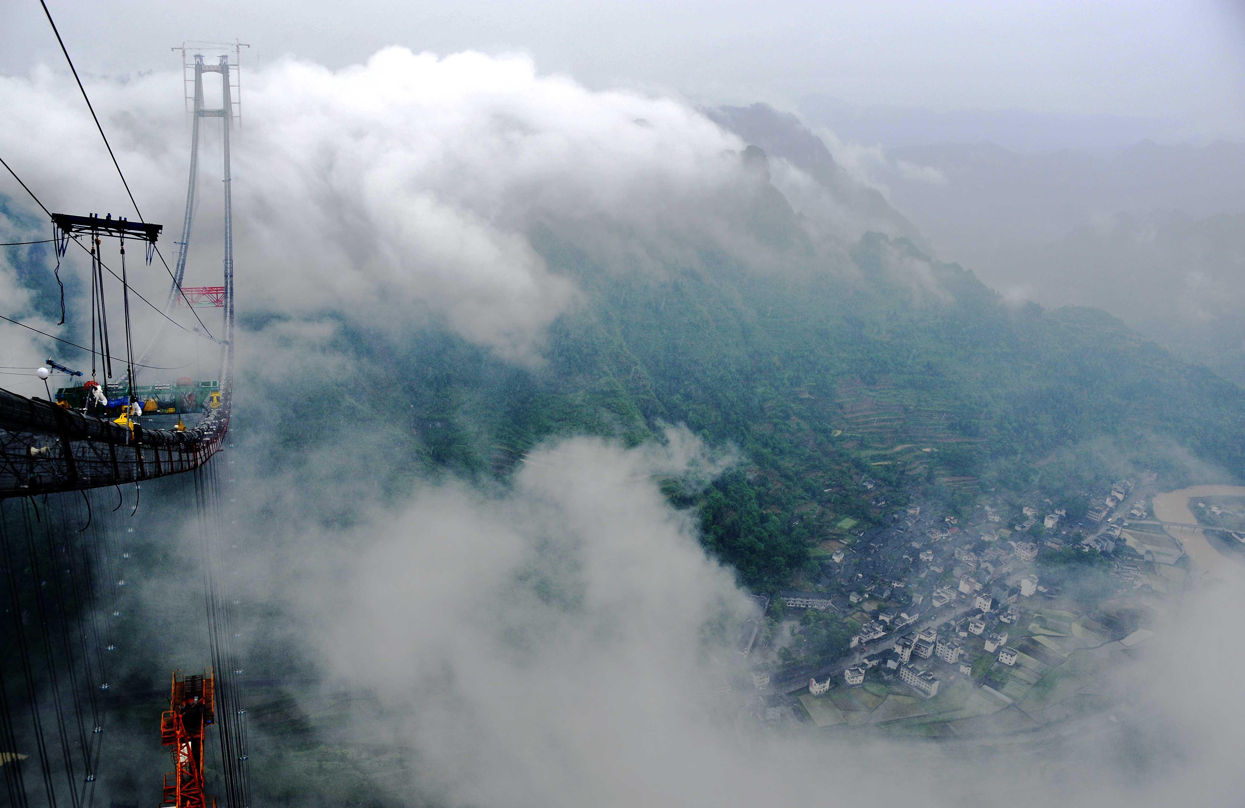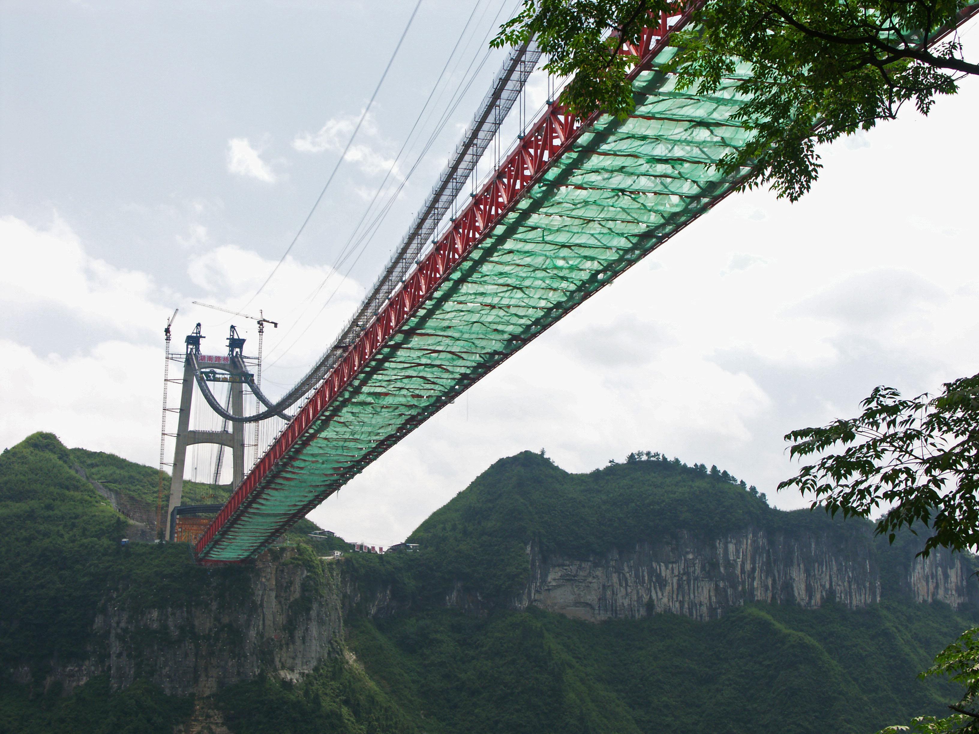 如果修矮寨隧道,開山造路,甚至以破壞生態爲代價真算得不償失了!而且經過實地考察!德夯hang大峽谷地質條件複雜。有喀斯特地貌,有大規模的溶洞、漏斗、天坑和暗河密佈!修個隧道跟渡劫似的!因此隧道提議被否定!矮寨大橋構想提上日程!零七年開始動工,一二年正式通車!因爲空中建橋,特意啓動了飛艇運輸,大大縮減了工程進度!矮寨大橋首次開創塔與梁分離式的懸索橋。減少山體開挖量67萬立方米。